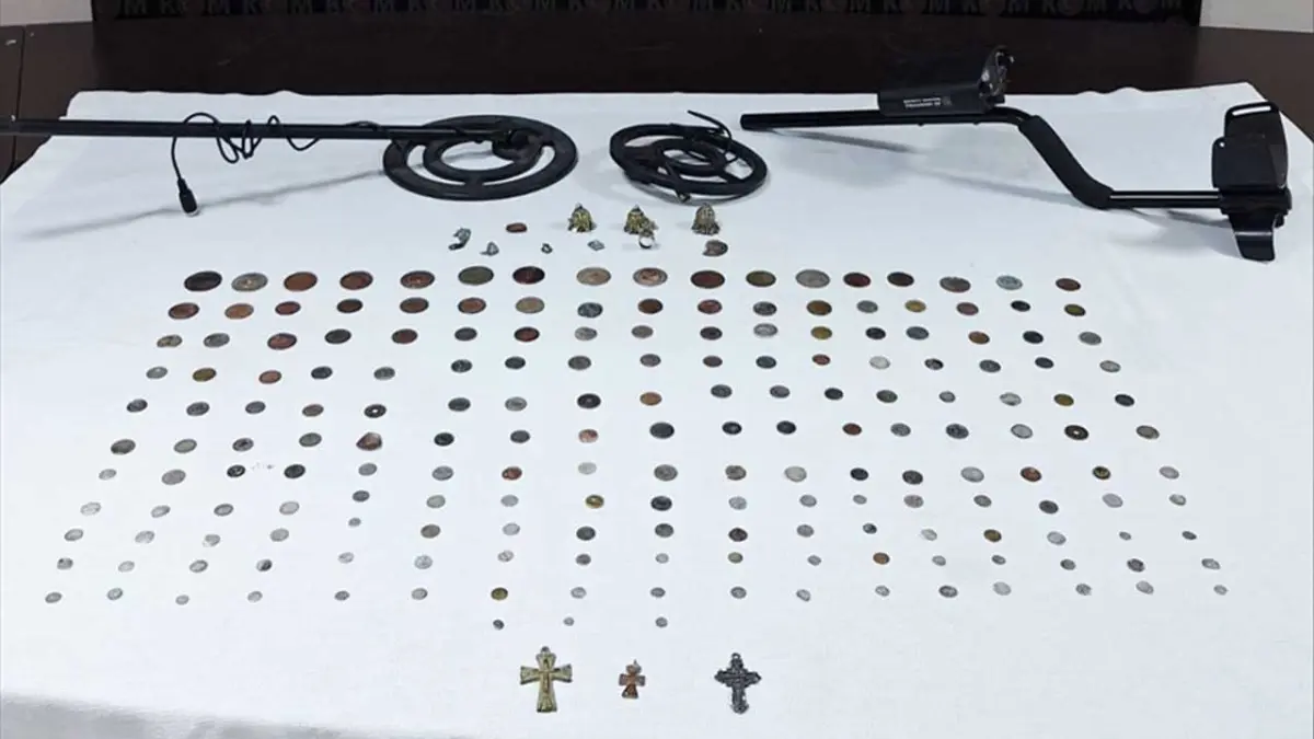 Ele geçirilen eserler arasında 190 adet sikke, 10 farklı tarihi obje ile 3 demir haç bulunurken, ayrıca kaçak kazılarda kullanıldığı değerlendirilen metal arama dedektörü de ekipler tarafından muhafaza altına alındı.