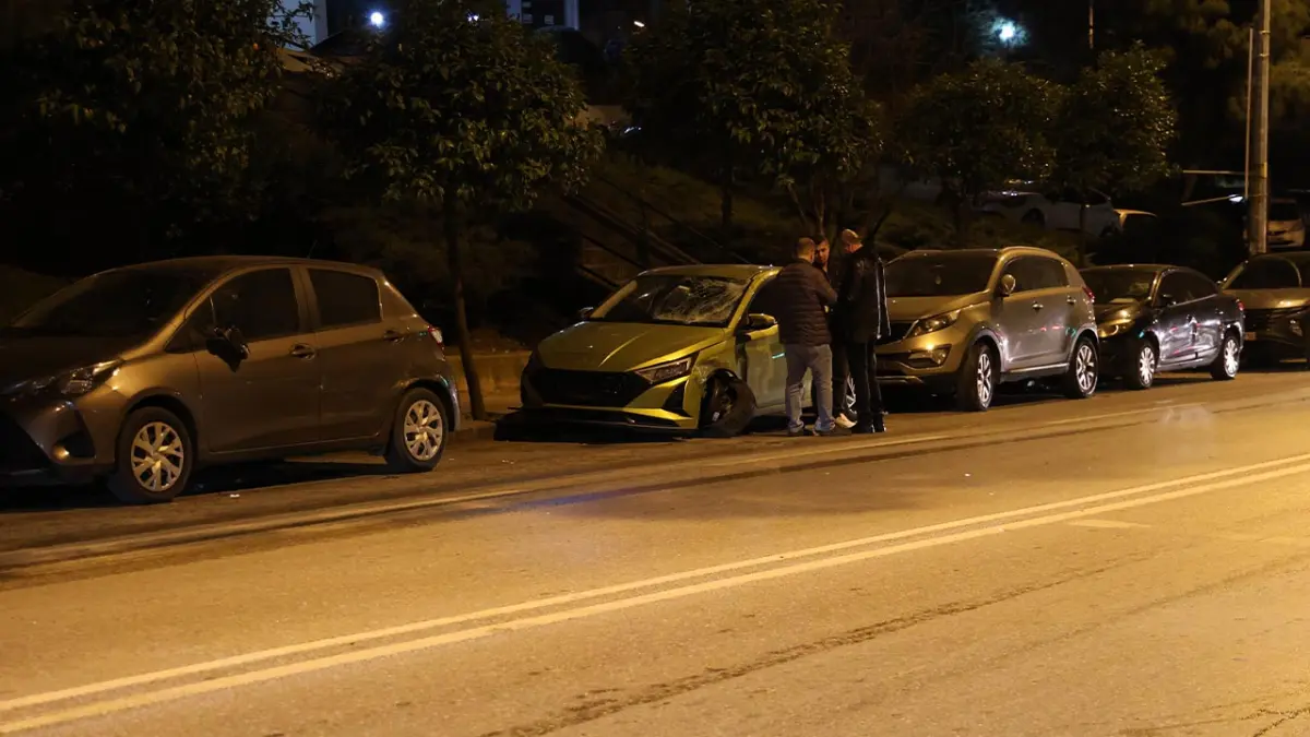 İnönü Caddesi’nde meydana gelen kazada iddiaya göre, kimliği öğrenilmeyen sürücünün kullandığı 35 CBN 029 plakalı otomobil, kontrolden çıktı. Sürücüsünün direksiyon hakimiyetini kaybettiği otomobil karşı yönden gelen S.G., idaresindeki 35 CVZ 010 plakalı motosiklete çarptı. Motosiklet sürücüsü kazanın şiddetiyle park halindeki bir aracın üzerine savrulurken, otomobil ise park halindeki 5 araca daha çarparak durabildi.