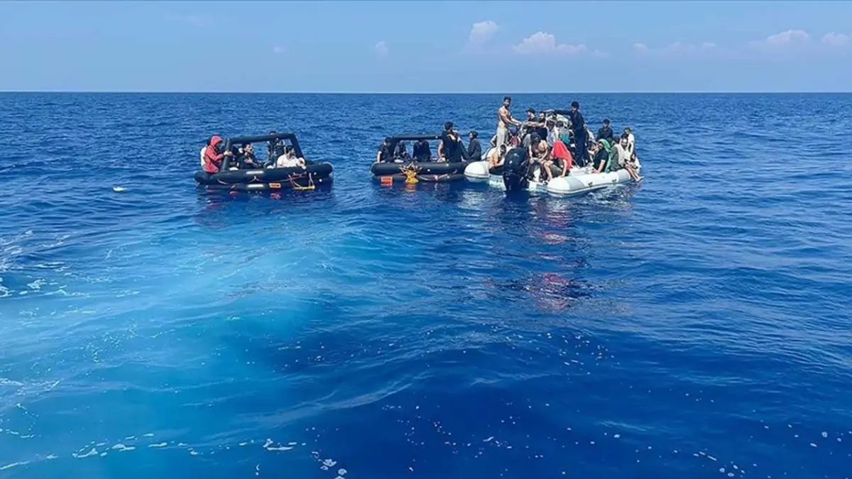 Ekiplerce durdurulan hareketli lastik botta 20'si çocuk 43 düzensiz göçmen bulunduğu belirlendi.