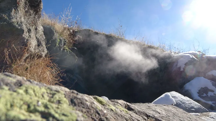 Bitlis’in Tatvan ilçesinin 2 bin 948 rakımdaki volkanik Nemrut Dağı’nın zirvesinde yer alan ve yazın tamamen kuruyan “Buhar Bacaları” kışın yeniden aktifleşmeye başladı.