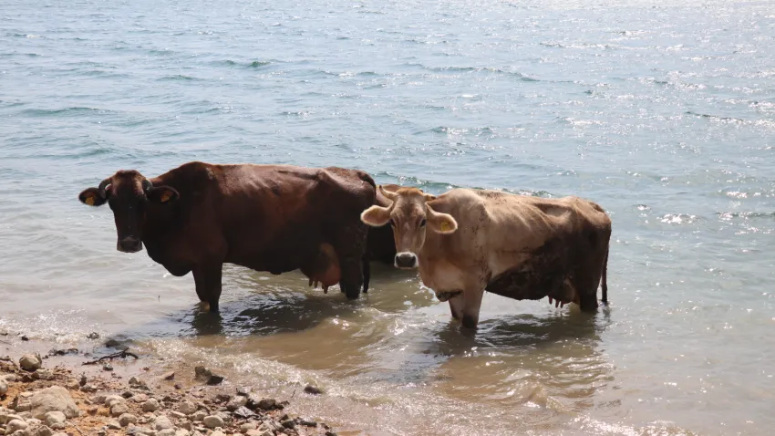 Burası halk plajı değil, inek plajı… İneklerin deniz keyfi gülümsetti