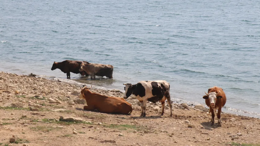 Bolu’da sıcaklardan bunalan inekler, şehir merkezinin içme suyunun karşılandığı Gölköy Baraj Gölü’ne girerek serinledi. Göl kenarını adeta bir plaj gibi kullanan inekler, ağaç gölgesine geçti. Gülümseten anlar fotoğraf kareslerine yansıdı.