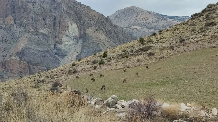 Baharın gelmesiyle birlikte dağ keçileri Erzurum'da ilçe merkezine yakın konumlara inmeye başladı