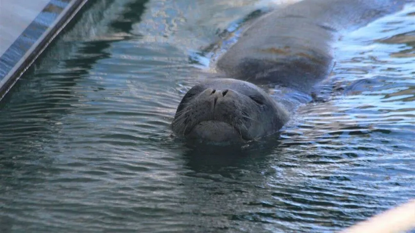 Didim' de nesli tükenme tehlikesi altında olan ve Türkiye’de sadece 100 tane olduğu tahmin edilen Akdeniz foku, marinada bulunan bir teknede görüntülendi.
