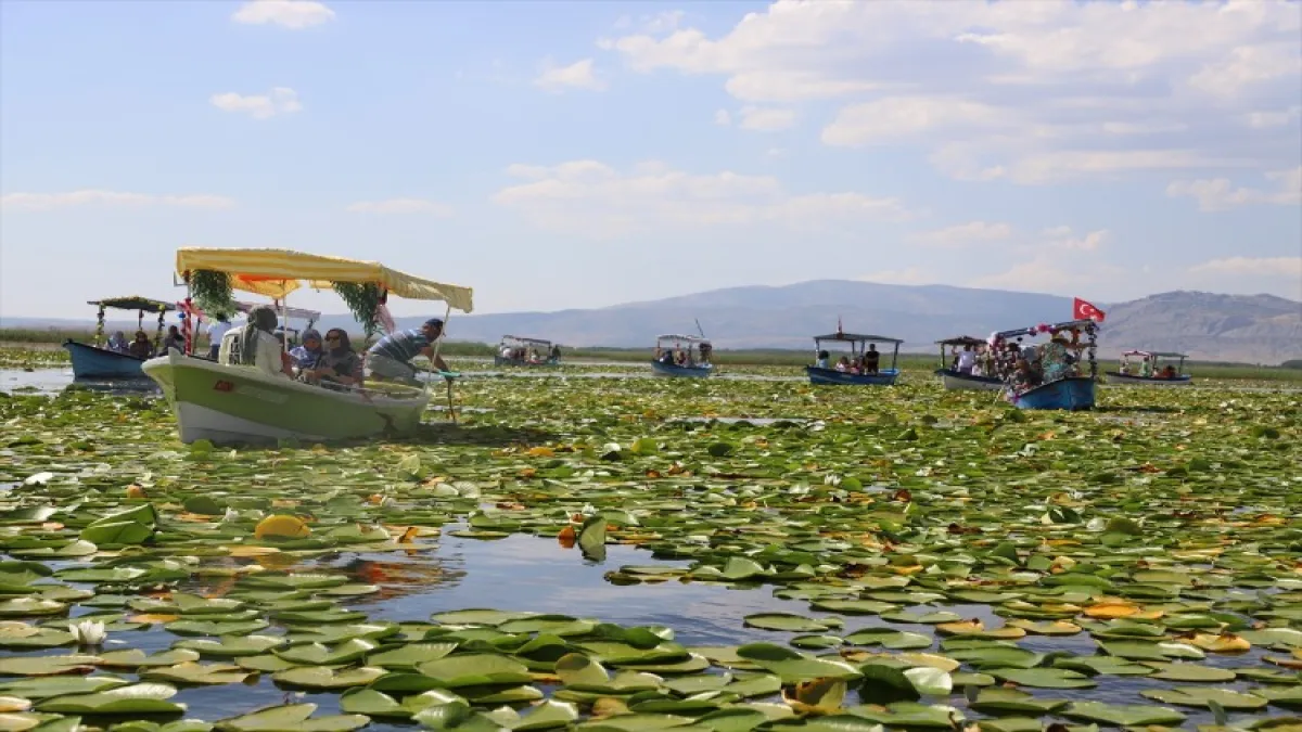 Göle kıyı olan mahallelerden düzenlenen tekne turlarına katılanlar, sazlıkların arasından ulaşılan nilüferlerin arasında kuş sesleri eşliğinde yaklaşık 1 saat gezinti yapıyor.