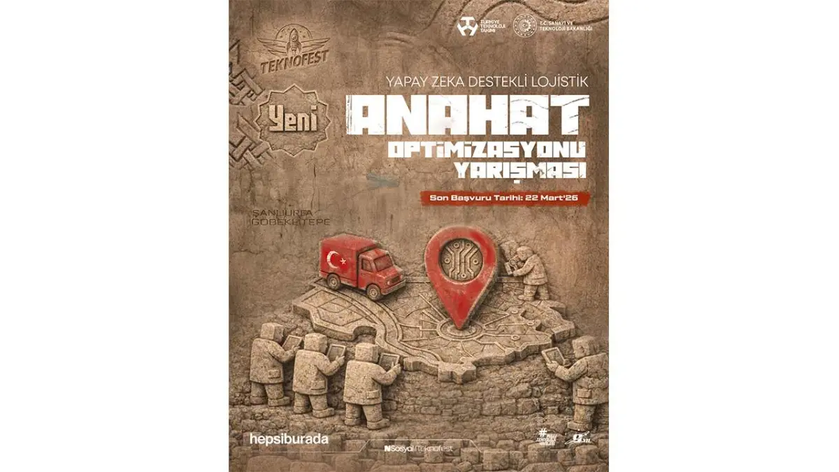 Türkiye’nin en büyük teknoloji festivali TEKNOFEST 2026, Hepsiburada'nın yürütücülüğünde gerçekleştirilecek "Yapay Zeka Destekli Lojistik Anahat Optimizasyonu Yarışması" ile genç yetenekleri teknoloji alanında bir araya getirmeyi hedefliyor. Lojistik sektöründe önemli bir alan olan anahat taşımacılığında makine öğrenmesi ve yapay zeka çözümleri geliştirecek olan yarışma, katılımcıların gerçek operasyonel veri setleri ile sorunlara yaratıcı çözümler üretmelerini sağlayacak. Başvurular 22 Mart 2026 tarihine kadar devam edecek ve kazananlar, ödüllerini 30 Eylül-4 Ekim tarihlerinde Şanlıurfa’daki TEKNOFEST sahnesinde alacak.