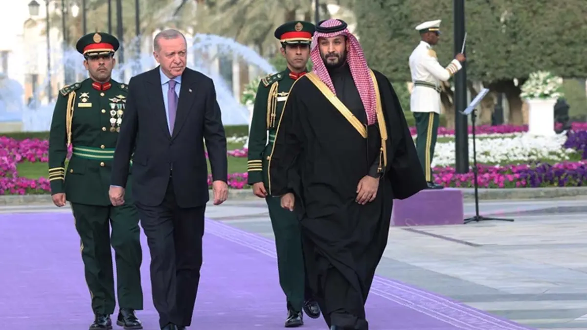 Cumhurbaşkanı Erdoğan, resmi ziyarette bulunduğu Suudi Arabistan'ın başkenti Riyad'da, Veliaht Prens Muhammed bin Selman tarafından resmi törenle karşılandı.