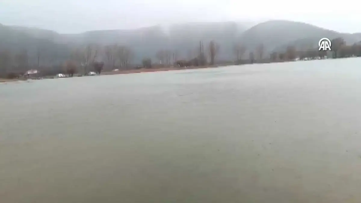 Bozdağ'daki 1050 metre rakımlı Gölcük Mahallesi'ndeki göl, bölgede 2 gündür etkili olan sağanak sonucu su seviyesi yükselerek taştı.