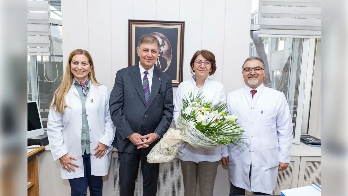 Ziyaretin ardından Başkan Tugay ve Eşrefpaşa Hastanesi hekimleri ile sağlık çalışanları 14 Mart Tıp Bayramı anısına fotoğraf çektirdi.