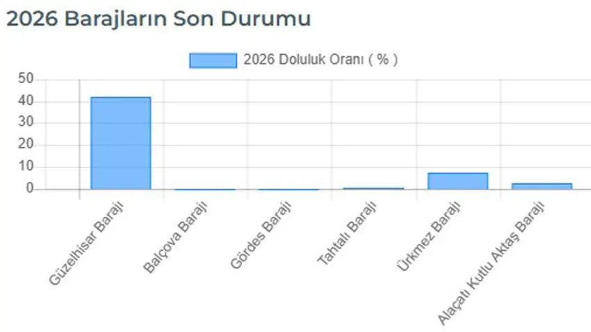 İzmir Su ve Kanalizasyon İdaresi Genel Müdürlüğü (İZSU), yayınladığı veriler ile İzmir’e su sağlayan 6 barajdaki son durumu gözler önüne serdi. İZSU’nun verilerine göre İzmir’in barajlarında bugün itibariyle toplam 61 milyon 901 bin metreküp su bulunurken, geçen haftaya kıyasla İzmir’in barajlarından 5 milyon 989 bin metreküp su eksildiği görüldü.