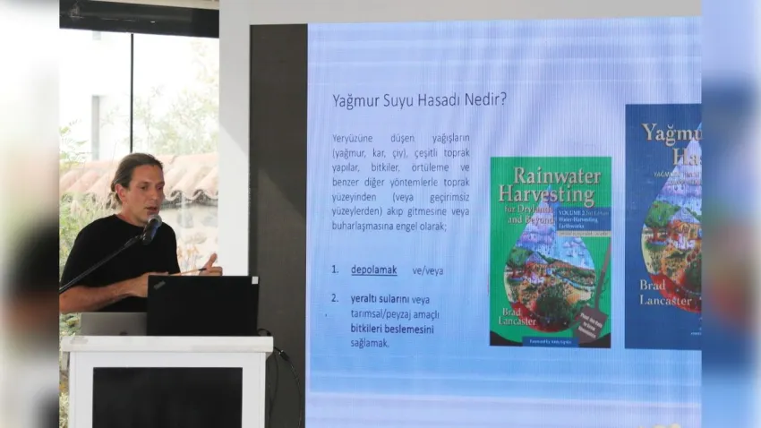 Yuva Derneği Eğitmeni Emre Rona ise Yağmur Suyu Hasadı ve Kırsalda Su Tutma Çalışmaları başlıklı konuşmasında; “Toprağın suyu tutma kapasitesini artırmadan hiçbir kent kendini iklim risklerine karşı koruyamaz.” ifadelerini kullandı. Rona, ayrıca kent çeperlerinde oluşturulacak yeşil altyapıların, afet risklerini azaltmada kritik rol oynadığını vurguladı.