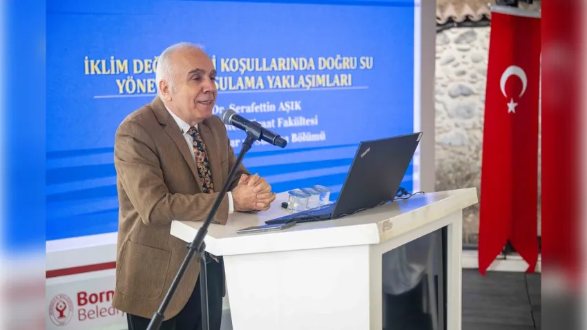 Panelde, “İklim Değişikliği Koşullarında Doğru Su Yönetimi ve Sulama Yaklaşımları” başlığıyla konuşan Ege Üniversitesi Ziraat Fakültesi’nden Prof. Dr. Şerafettin Aşık, Türkiye’nin su kullanım oranlarına dikkat çekerek tarımsal tüketimin azaltılması gerektiğini vurguladı. Suyun artık stratejik bir meta olarak ele alınması gerektiğini belirterek, “Yağmur gökten yağıyor ama biz onu hızla denize gönderiyoruz. Konuşmak yerine, yağmuru tutmaya odaklanmamız gerekiyor. Dijital tarım, sensör tabanlı izlemler ve yapay zekâ destekli su yönetimi tarımda verimliliği artırabilir.” ifadelerini kullandı.