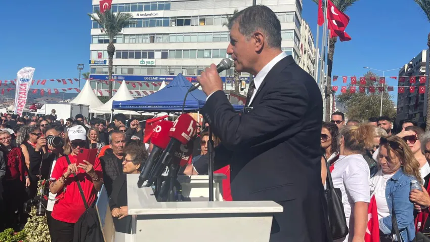 Güç’ün ardından söz alan İzmir Büyükşehir Belediye Başkanı Cemil Tugay ise kürsüden iktidar mesajı verdi. Tugay, açıklamasında şunları kaydetti: “En içten duygularla CHP örgütünün Cumhuriyet Bayramı’nı kutluyorum. Bizler bugün sadece kurulmuş bir devlet düzeninin değil aslında yapılmış bir devrimin yıl dönümünü kutluyoruz. Burada halkın iradesini olmadığı bir ülkeden haklın iradesine teslim edilmiş bir demokratik cephenin bir ülkede kutluyoruz. Bu rejim kimsesizlerin kimsesi olmaya söz verdi. Cumhuriyeti kuran partinin mensupları olarak bu en büyük onuru hep birlikte yaşıyoruz. Ben Cumhuriyet Halk Partili olmaktan gurur duyuyorum. Uzun zamandır görmediğim bir kalabalığı görüyorum burada. Bunun nedeni de elbette yeni il başkanımız. Bugünden itibaren hepimizin odaklanması gereken tek şey önümüzdeki genel seçim. Ne zaman olursa olsun biz hazır olacağız. Biz örgüt mensubu olan tüm kardeşlerimizden rica ediyorum; bugün bizden kimsesizlerin kimsesi olmamızı bekleyen, yoksullukları bitirmemizi bekleyen, şiddetin esiri olmuş milyonlarca insanın kurtulmasını bekleyen, bu ülkenin adaletle kalkınmasını bekleyen gerçek bir partiye ihtiyaç duyan bu halka İzmirlilere en yüksek oy oranını sağlamak zorundayız. CHP’nin en büyük borcu halka, tarihe geleceğidir. Biz önümüzdeki genel seçimde İzmir’den rekor oy çıkaracak mıyız? Ben partimize örgütümüze güveniyorum. Hiçbiriniz İzmir Büyükşehir Belediyesi ya da ilçe belediyelerimiz yüzünden başınızı önünüze eğmeyeceksiniz. Bugün siyasi nedenlerle tutsak edilmiş olan tüm yoldaşlarımıza selam olsun. Adaleti bizim getireceğimizi, çalışarak bunu sağlayacağımızı kimse unutmasın. Bugün partinin başında kahramanca mücadele eden Genel Başkanımız Özgür Özel’e kucak dolusu selam gönderiyorum. O da İzmir’e güvensin. ‘İzmir CHP’nin amiral gemisidir’ dedi. Bunun gereğini yerine getireceğiz.”
