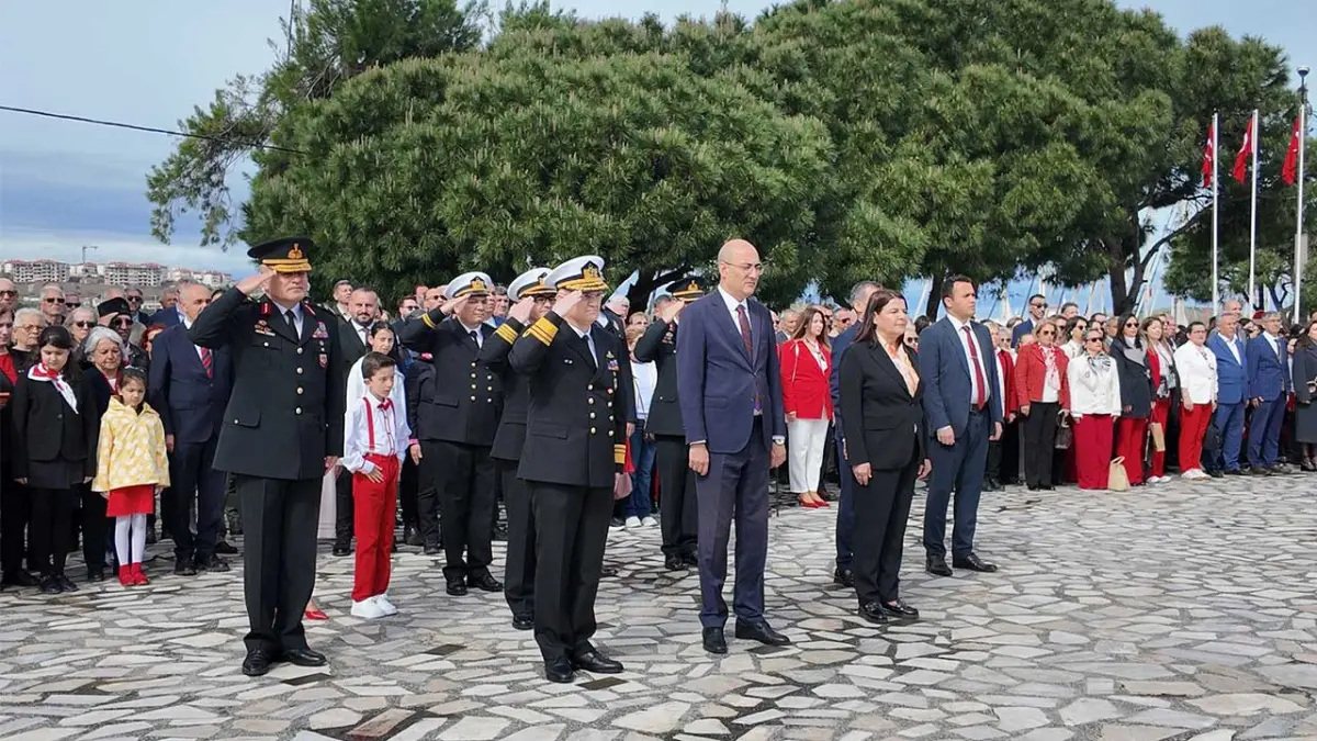 Kutlamalar, Cumhuriyet Meydanı’ndaki Atatürk Anıtı önünde gerçekleştirilen törenle başladı. Milli Eğitim Müdürlüğü çelenginin sunulmasının ardından saygı duruşunda bulunuldu ve İstiklal Marşı okundu. Resmi törenin ardından bazı siyasi parti ve sivil toplum kuruluşu temsilcileri de anıta çelenk sundu.