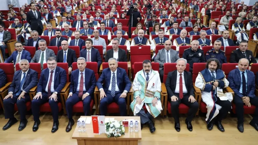 Rektör Prof. Dr. Köse tarafından kurumsal hediye takdim edilen İçişleri Bakanı Ali Yerlikaya’nın katılımıyla yapılan akademik açılış programı, toplu fotoğraf çekimi ile sona erdi.