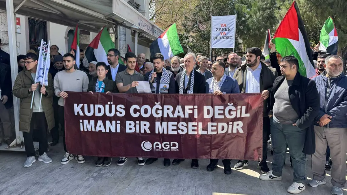 Anadolu Gençlik Derneği İzmir Şubesi üyeleri, İsrail’in İran, Lübnan ve Filistin’e yönelik saldırıları ile Mescid-i Aksa’nın ibadete kapalı tutulmasını protesto etti.