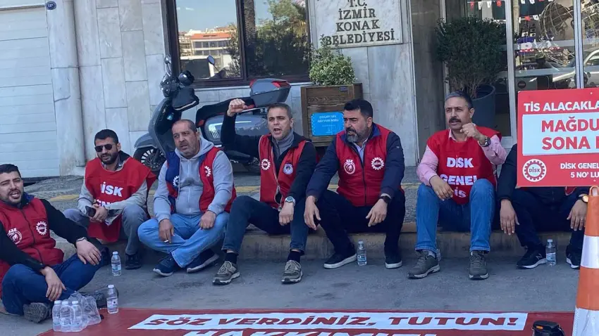 Konak Belediyesi’nde görev yapan işçilerin, Toplu İş Sözleşmesi’nden (TİS) doğan alacaklarının ödenmediği gerekçesiyle başlattığı eylemler sürüyor. DİSK’e bağlı Genel-İş İzmir 5 No’lu Şube yönetimi tarafından belediye binası önünde başlatılan oturma eylemi bugün 8. gününe girdi. İşçiler; bir buçuk yıldır biriken sözleşme farkları, ödenmeyen fazla mesai ücretleri ve iş güvenliği ekipmanlarındaki eksiklikler nedeniyle belediye yönetimine tepki gösterdi. Belediye yönetiminden henüz bir geri dönüş alamayan sendika, talepler karşılanmazsa 1 Mayıs sonrası eylemin kapsamını genişleteceklerini duyurdu.