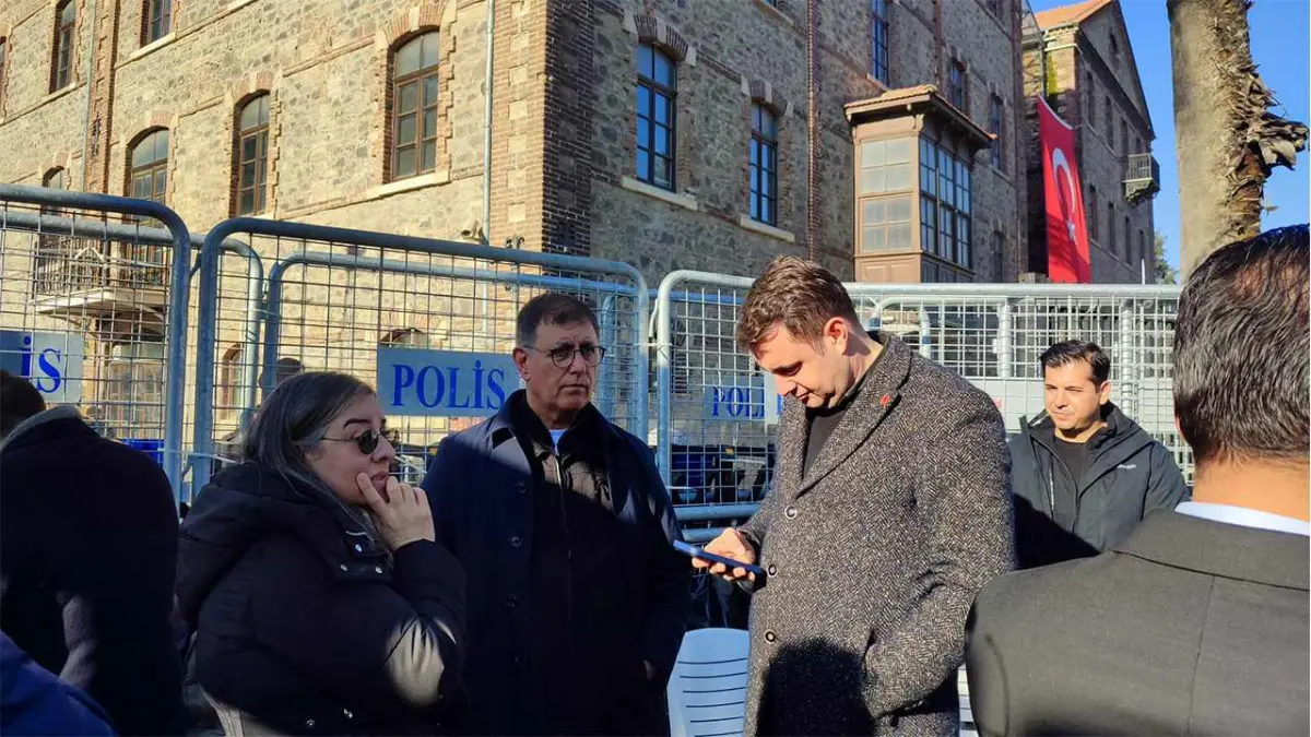 İzmir Büyükşehir Belediyesi’nden Vakıflar Genel Müdürlüğü’ne devredilen ve polis eşliğinde tahliye işlemleri başlatılan tarihi Meslek Fabrikası binası önünde gergin bekleyiş devam ediyor. Dün sabah saatlerinde emniyet güçlerinin müdahalesi ve bina çevresine kurulan polis barikatlarıyla yeni bir boyuta taşınan tahliye sürecine karşı, İzmir Büyükşehir Belediye Başkanı Dr. Cemil Tugay’ın başlattığı nöbet eylemi ikinci gününde de sürüyor. Bina giriş ve çıkışlarının polis bariyerleriyle kapatıldığı alanda, belediye ekipleri ve emniyet güçlerinin bekleyişi devam ederken, mülkiyet davasına ilişkin hukuki süreç yakından takip ediliyor.