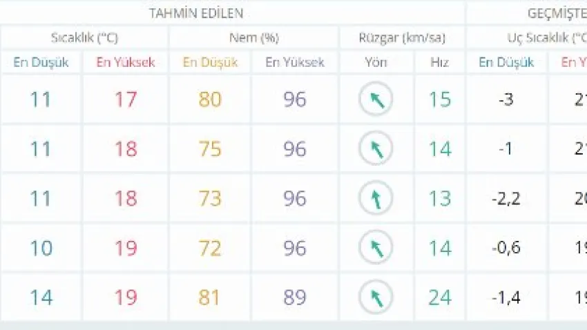 Yağışlı havanın ise Perşembe gününe kadar sürmesi, Cuma günü havanın parçalı bulutlu olması ve Cumartesi gününden itibaren kentin yeniden yağışlı havanın etkisi altına girmesi bekleniyor.