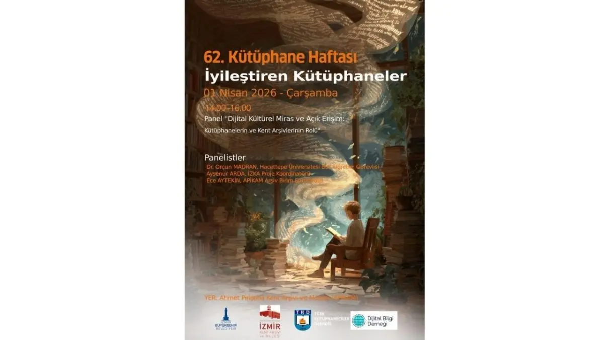 İzmir Büyükşehir Belediyesi, 62. Kütüphane Haftası’nı bu yıl “İyileştiren Kütüphane” temasıyla 30 Mart-5 Nisan tarihleri arasında kutluyor. Hafta etkinlikleri kapsamında 1 Nisan Çarşamba günü 14.00-16.00 saatleri arasında APİKAM Araştırma ve Toplantı Salonu’nda “Dijital Kültürel Miras ve Açık Erişim: Kütüphanelerin ve Kent Arşivlerinin Rolü” başlıklı panel düzenlenecek. APİKAM araştırma ve toplantı salonunda yapılacak panel, Türk Kütüphaneciler Derneği (TKD) ve Dijital Bilgi Derneği iş birliğiyle hayata geçirilecek. Panelde; Hacettepe Üniversitesi Bilgi ve Belge Yönetimi Bölümü Öğretim Görevlisi Dr. Orçun Madran, İzmir Kalkınma Ajansı (İZKA) Proje Koordinatörü Ayşenur Arda ve APİKAM Arşiv Birim Sorumlusu Uzman Ece Aytekin konuşmacı olarak yer alacak. Dijital kültürel mirasın korunması ve açık erişim uygulamalarının kütüphaneler ile kent arşivlerindeki rolü ele alınacak.