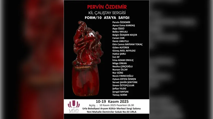 Uluslararası seramik sanatçısı Pervin Özdemir’in öncülüğünde düzenlenen “Kil Çalıştayı 2025 – Form 10 / ATA’YA SAYGI” sergisi, 10–19 Kasım tarihleri arasında Urla Belediyesi Aryom Kültür Merkezi’nde sanatseverlerle buluşacak.