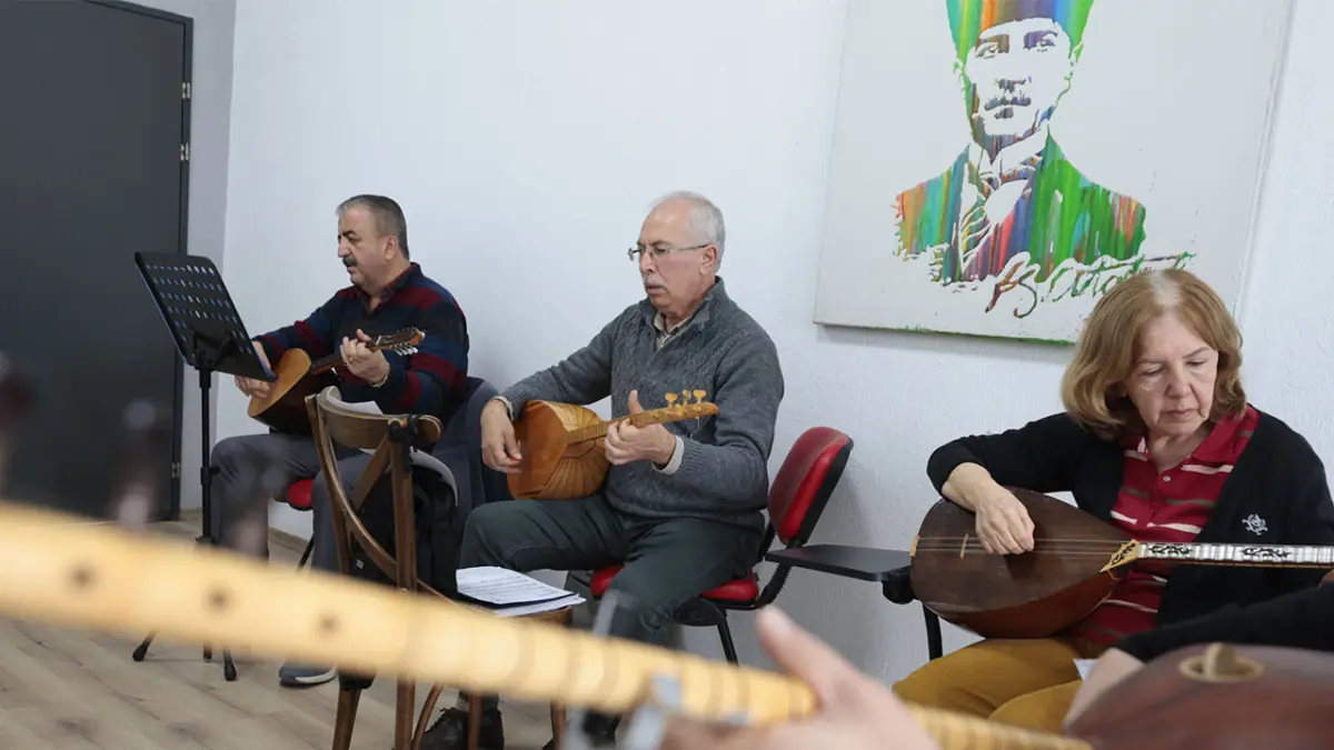 Konak Belediyesi’nin Toros Sosyal Tesisleri’nde devam eden Bağlama Kursu’nda kursiyerler, sazın tellerini titretirken yetenekleriyle göz doldurdu. Geçen kasım ayından bu yana Ozan Ünal eğitmenliğinde ders alan türkü sevdalısı öğrenciler, kaydettikleri ilerleme ile de dikkat çekiyor. Kurs kapsamında bağlamanın yanı sıra bona ve solfej de öğrenen katılımcılar, ritim ve nota bilgilerini geliştirirken, eğitim sonunda verecekleri konserin hazırlıklarını sürdürüyor. Anadolu’nun dört bir yanından türküleri hatasız icra eden grup, her dersle birlikte hem kendini geliştiriyor hem de müzik sevgisini pekiştiriyor.