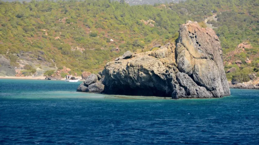 Sığacık Körfezi’nin kuzey yakasında bulunur. Adını, koya yaklaşırken ortada bir kaya bulunuyor ve oradan alıyor. Bu muazzam renkli deniz de tekne keyfini çıkarabilirsiniz.