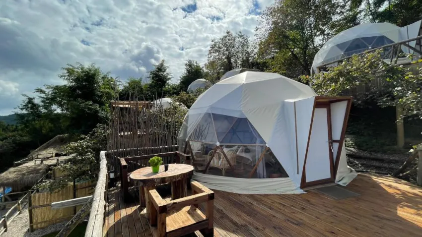 Lüks çadırların olduğu glamping konseptinin trendlerinden biri olan Sapanca Dome, orman içerisinde yemyeşil doğanın içerisinde, her birinin önünde açık hava da bulunan jakuzisi bulunan keyifli bir tatil deneyimi sunuyor. Hafta sonu kaçamağında fırsat bulacağınız Sapanca Dome gelerek 9 farklı çadırlarda romantik anlar yaşayabilirsiniz. Kahvaltının fiyata dahil olduğu, mangal ve ateş yakma hizmetinin ücretsiz olarak sunulduğu Sapanca Dome’nin fiyatları en düşük 5000 TL’den başlıyor.