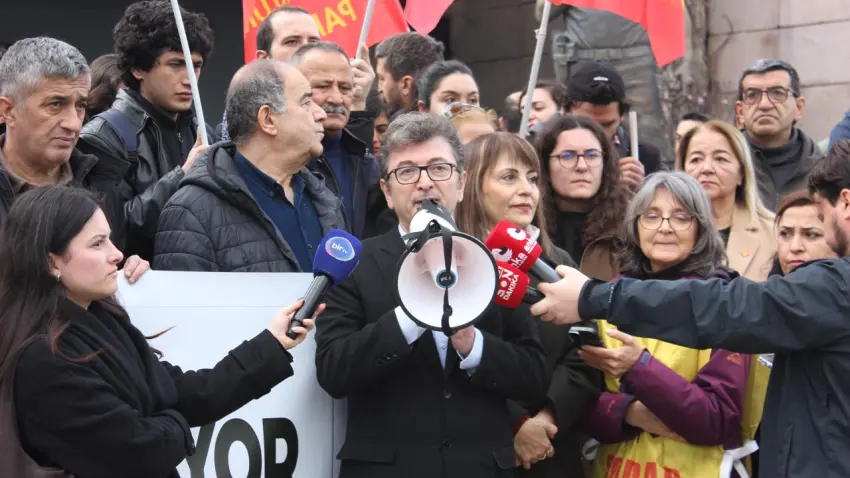 İmamoğlu’nun tutuklanmasına tepki olarak başlayan eylemlerin tarihe geçtiğini söyleyen Gökçen, “Bugün burada, tutuklu bulunan dört genç arkadaşımızın ve yargılanan onlarca gencin yanında olmak için toplandık. Öncelikle burada bulunan siyasi parti temsilcilerini, örgütlerimizi ve dayanışma gösteren herkesi saygıyla selamlıyorum. CHP olarak; cumhurbaşkanı adayımız Ekrem İmamoğlu’nun gözaltına alındığı ve tutuklandığı, gençlerin direnişiyle tarihe geçen 19 Mart sürecinden bu yana yaşananları yakından takip ediyoruz. O gün barışçıl gösteri hakkını kullanan, demokratik itirazını dile getiren gençler bugün slogan attıkları gerekçesiyle gözaltına alınmış, ardından tutuklanmıştır. Aradan aylar geçmesine rağmen hâlâ tutuklu bulunan dört genç arkadaşımız var ve bugün onların duruşması görülecek. Bu gençler yalnızca eleştirdikleri, düşüncelerini ifade ettikleri ve barışçıl gösteri haklarını kullandıkları için yargılanmaktadır” dedi.