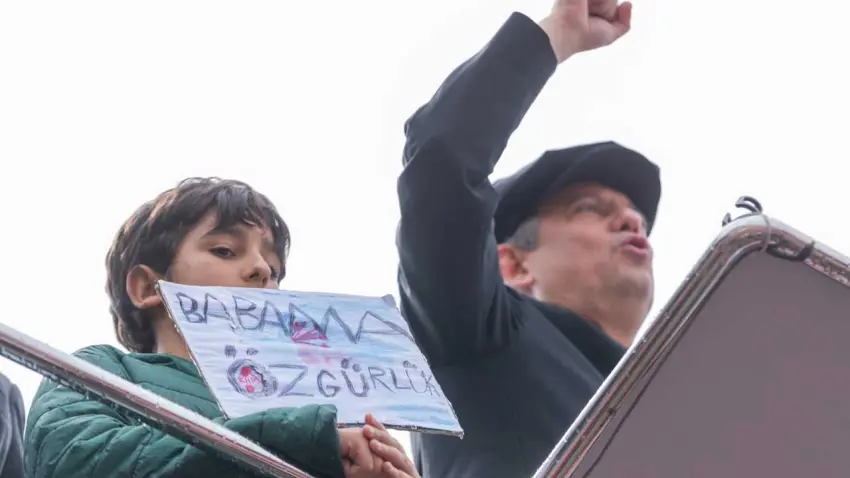 GÜNEL'İN ÇOCUKLARI, "BABAMA ÖZGÜRLÜK" PANKARTIYLA SAHNEYE ÇIKTI