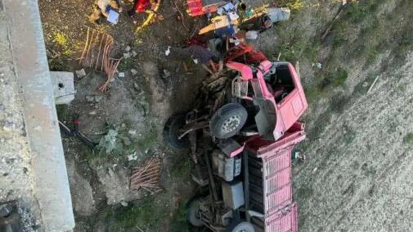 Denizli’nin Çardak ilçesinde önünde kaza yapan otomobile çarpmamak için sürücüsünün manevra yaptığı kamyon, 8 metrelik köprüden aşağı düştü