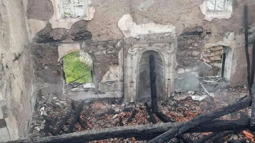 Samsun'un Bafra ilçesinde çıkan yangında cami küle döndü.